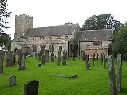 The body of the church is constructed in sandstone blocks, and the tower is in limestone with sandstone quoins; the roof is covered in green slates. It has coped gables and on the east gable is a cross finial. Its plan consists of a six-bay nave with north and south aisles, a clerestory and a south porch, a two-bay chancel with a south vestry and a square west tower. The vestry was originally the chantry chapel. The tower has three stages. The lower two stages up to the string course date from the medieval period; the upper storey has an inscription giving the date of this as 1727. It contains louvred, round-arched bell openings, and is surmounted by a battlemented parapet. In the aisles are two-light windows with trefoil heads; one of these is original, the others are similar but date from the 1932 restoration. The clerestory contains two- and three-light windows that also date from 1932. In the chancel are two original windows and, at a lower level, a squint; over the vestry is a four-light window. The east window has five lights and an inscription to John Whelpdale. The opening from the tower into the nave is a Norman doorway that has been moved from elsewhere. Inside the porch is another Norman doorway, which again has been moved. Also in the porch is a medieval grave slab and a stoup for holy water. In the south wall is a blocked priest's door.[2]