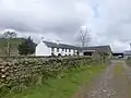 1708 | The farmhouse and barns are rendered with green slate roofs. The house has two storeys, four bays, and a doorway and sash windows with stone surrounds. It is flanked by barns; the barn to the left has an entrance with stone surround, a smaller opening and a loft door, and the barn to the right has a blank front wall.[22] | II |