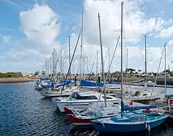 A marina with floating moorings for about 75 boats, some more than 10 metres (33 feet) long, and two boat ramps, is connected by a long sheltered channel to the Barker Inlet. Home to the long-established St Kilda Boat Club,[24] it provides secure parking, slipping facilities and an electric mobility hoist for boarding boats.[25]