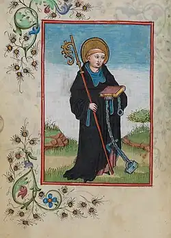 Saint Leonard was a popular dedicatee of chapels and hospitals in mediaeval Scotland. In addition to St Leonard's College, St Andrews, chapels and/or hospitals dedicated to the saint stood in Ayr, Dunfermline, Lanark, and Roxburghshire. Two other dedications to Saint Leonard existed in Midlothian.[13][14][15]