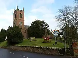 There are two listed buildings in the churchyard: a sundial dated 1798[11] with a gnomon dated 1999, and a table tomb near the east end of the church.[12] There is also a war memorial near the churchyard gate.[13] The churchyard also contains the war grave of a Canadian soldier of World War I.[14]