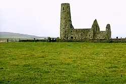 St Magnus Church is a ruined medieval round-tower church located on the island of Egilsay, in Orkney, Scotland. The site is recognized as the place of execution of Saint Magnus Erlendsson, Earl of Orkney, in the 12th century. The roofless structure dates back to the 12th century, and has been described by Historic Environment Scotland (HES) as second only to St Magnus Cathedral, Kirkwall, as a surviving Norse church in Scotland.[1]