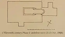 Whatever origin theory is preferred it is certainly the case that the church's history began before the Norman Conquest.[4] This was confirmed by the excavation of a small section in the eastern part of the nave. It revealed the Saxon foundation stones and these are now visible through a glass window in the floor in the nave.