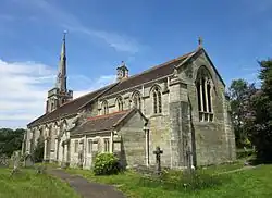 The village straddled the boundary of two large rural parishes, Buxted and Mayfield,[3] and was nominally served by those villages' churches—St Margaret the Queen's Church and St Dunstan's Church respectively.[4] These were both more than three miles away,[3] and the owner of Buxted Lodge (a large house in Hadlow Down), Benjamin Hall, was concerned about the number of villagers who could not attend church.[5] Furthermore, a Nonconformist place of worship—the Providence Chapel—had been founded in the centre of the village in 1824,[6] potentially attracting people away from the Church of England's ministry. In 1834, he wrote to the Archbishop of Canterbury, William Howley, seeking permission and funds to build a church in the village—adding that "very many poor children [were] wandering about the lanes in ignorance of almost every duty, moral or religious".[5] The Archbishop supported Hall's idea, but advised that money would be limited—although within a few months, the reforms instituted by the Ecclesiastical Duties and Revenue Commission led to initiatives such as the founding of the Society for Building Churches and Chapels, whose purpose was to provide funds to establish new churches.[7][8]