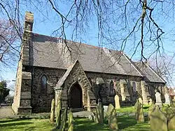 There is a boundary wall with lychgate made of the same stone as the main building.[6] In the churchyard are nine Commonwealth War Graves belonging to soldiers of World War I and World War II.[9]