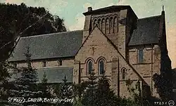 The church was built between 1870 and 1873 to accommodate the increasing numbers of summer visitors to the area. It was designed by the Lancaster partnership of Paley and Austin, the commission being gained as a result of a competition won by Hubert Austin. The principal benefactor was the Liverpool businessman Charles Kurtz. The church was consecrated in July 1873, and provided seating for 150 people.[3] It replaced a medieval church dedicated to Saint Michael, and cost £5,000 (equivalent to £560,000 in 2023).[4] The tower was completed in 1907, but has never held any bells.[2] Subject to funds being available, the ring of eight bells from Porthmadog church are scheduled to be transferred to St. Mary's.[5][6]