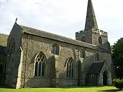 The church dates to 1220 but the nave walls contain evidence that there was an earlier building dating from c1100.[3] It consists of a tower with spire, nave, chancel and north aisle.[4][2]