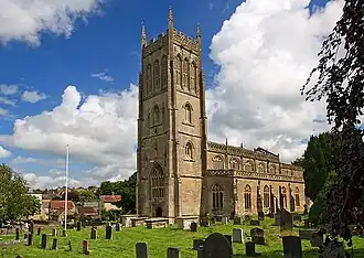 The Church of St Mary in Bruton, Somerset, England was largely built in the 14th century. Like many Somerset churches, it has a very fine tower; less usually it has a second one as well.[2] Simon Jenkins has called Bruton's tower "Somerset architecture at its most powerful."[3] It has been designated a Grade I listed building.[4][5]