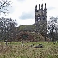 The church is notable for its Victorian architecture, medieval remains and a surviving 11th-century motte-and-bailey castle mound located within the grounds.[3] The church has been on the Heritage at Risk Register since 2013 due to substantial works required to repair the building.[4][5]