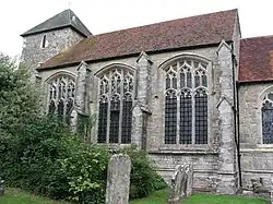 The stained glass in the church windows includes panels in the central window on the north side of the nave which were paid for by John or Reginald Pympe of the neighbouring Nettlestead Place in 1438. The north chancel window possibly dates from the 1460s and angels holding heraldic shields in the top lights of many of the windows are also 15th century. Other windows are Victorian or Edwardian in 15th century style.[1]