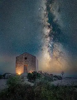 Located in one of the few areas of the Maltese islands that are not heavily impacted by nocturnal light pollution, the Milky Way can be viewed behind it on a clear night