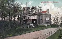 Christianity in Woolwich goes back to the Early Middle Ages. In 2015 Oxford Archaeology discovered a Saxon burial site in the area close to the Thames east of Woolwich Ferry. It contained 76 skeletons from the late 7th or early 8th century. The absence of grave deposits indicates that this was an early Christian settlement.[1] The first church in Woolwich was probably pre-Norman conquest[2] and dedicated to Saint Lawrence. It stood on a promontory about 37 m north of the present-day church, more or less where the belvedere overlooking the river now is. The church was slightly separate from the early riverside settlement in Old Woolwich. From the early 10th till the mid-12th century Woolwich was ruled by the abbots of St. Peter's Abbey in Ghent, probably as a result of a gift from Ælfthryth, daughter of King Alfred and Countess of Flanders. Around 1100 Henry I gave the church to Gundulf of Rochester, bishop and prior of Rochester Cathedral. It was probably around this time that the church was rebuilt in stone. The church tower with walls of chalk and flint was partly excavated in 1970.[3]