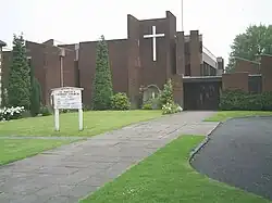St Patrick's Parish was founded in 1865. The foundation stone of the original church was laid in 1866 and the architect was E. W. Pugin. In the 1960s, with the building of the ring road, the church was demolished and the current site on the corner of Wolverhampton Road and Coronation Road, next to New Cross Hospital was provided by the local council for construction of a new church building. The church was opened in 1972.[6]