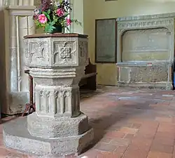 In the English Civil War, Parliamentarian infantry defaced a tomb in the north aisle, removing and destroying its inscribed plaque. The tomb is believed to be that of a member of the Arundel or Maltravers family.