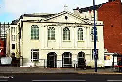 When the New Meeting House became unsuitable for congregation, they started construction on a new place of worship on Broad Street.[4] The New Meeting House was purchased, remodelled and consecrated as a Roman Catholic church in 1862,[5] at the time catering for a large influx of Irish and Italianimmigrants who had settled in the area, leading to the church being known as "the Italian church".[6]
