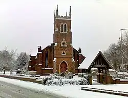 St Michael & All Angels Church is an Anglican parish church in Pelsall, West Midlands, England. It was built in 1844 to replace an older church on Paradise Lane and was completed in 1889. The Deans of Wolverhampton were vicars until 1846 when the church came under the ecclesiastical district of Pelsall. The churchyard has a memorial to the 1872 Pelsall Hall Colliery disaster when 22 miners died when the pit was flooded by a sudden rush of water. The Bishop of Lichfield and the village paid tribute to the miners and had a memorial erected at St Michael and All Angels Churchyard. The church sits at the junction of Hall Lane and Church Road. It is within the "Pelsall Common" conservation area though it is not listed. The church hall is used by the local community.[1][2][3][4][5]