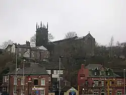 St Michael and All Angels Church overlooks Market Place in the town of Macclesfield, Cheshire, England. It is an active Anglican parish church in the diocese of Chester, the archdeaconry of Macclesfield and the deanery of Macclesfield.[1] It forms a team parish with three other Macclesfield churches: All Saints, St Peter's and St Barnabas'.[2] The church is recorded in the National Heritage List for England as a designated Grade II* listed building.[3]