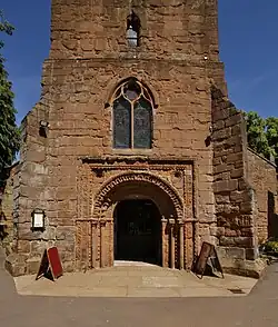 The abbey was largely demolished by 1547. In the demolition some architectural fragments were salvaged from the abbey and incorporated into the parish church. Most notable of these is the Norman west portal in the west tower, which Nikolaus Pevsner and Alexandra Wedgwood called "the most sumptuous Norman doorway in Warwickshire".[9] This doorway may in fact be a composite, created in the 16th century from elements of more than one doorway of the demolished abbey.[6]