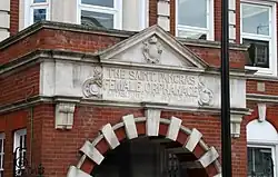 The orphanage was established to care for female orphans in the local area in 1776.[1] It was located in Hampstead Road where the foundation stone for premises completely rebuilt to a design by E. W. Hudson was laid by Lord Southampton on 28 January 1904.[1]