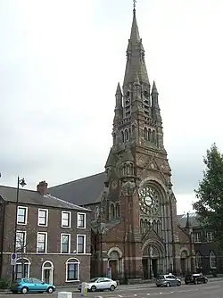 St. Patrick's Church, Belfast (Irish: Eaglais Naomh Padraig) is a Catholic church located in the Donegall Street area of Belfast, Northern Ireland. It is built in the Romanesque Revival style, with a four-stage tower and spire rising from the front west elevation.[1] The first church opened on the site in 1815, while the current building opened in 1877.