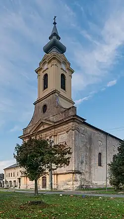 St Paul's Church (Serbo-Croatian: Crkva svetog apostola Pavla) is a Roman Catholic Parish church in Bač in Vojvodina, Serbia. The church was designed by Oswald Gáspár, architect of Czech origin and the building was constructed between 1773 and 1780.[1] Local parish was important regional centre before the Ottoman conquest of medieval Hungary.[2] Following the Great Turkish War parish was renewed in 1688 and in 1766 Archbishop Bátyany appointed himself as the parish priest.[2] He later funded the building of the new church at his own expense.[2] The majority of the parishioners as well as 14 out of 17 pastors until 2023 were of Šokci community with smaller groups of Catholic Hungarians, Germans and Slovaks.[2]