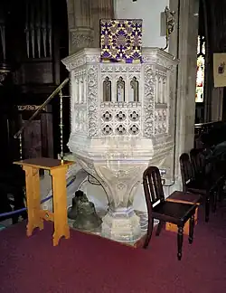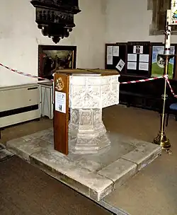In 1811 and 1825 galleries were added resulting in the loss of many wall memorials and tablets. The interior received a heavy Victorian restoration by George Gilbert Scott from 1866, and then by his son John Oldrid Scott into the 1880s,[19] during which the unsightly galleries were taken down but which left the church "dark and dull", according to Hoskins.[5] However, Scott refused to demolish the tower, as had been proposed by his patrons, and retained the 17th century large straight-headed and transomed windows of the north aisle.[8] During the restoration many memorials were salvaged and put into the Lady Chapel on the south aisle. The Lady Chapel itself was restored in 1911.[1]
