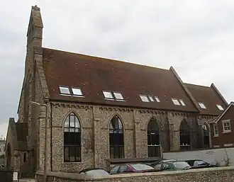 The church was closed and sold for redevelopment in 1982.[10] It was converted into a nursing home, retaining most of its ecclesiastical features including the intricate window tracery.[1][10][11] The latter was lost when the building was converted into flats in 2002, being replaced with plain modern windows instead,[10] but there has otherwise been little structural alteration. The flats are named "St John's Court"—a reference to the former name of John Street. "St John" referred to the Knights of St John Hospitallers, who had been active in Shoreham since the mid-12th century.[11]