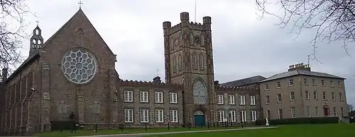 Founded in 1811 by Most Rev. Patrick Ryan, Bishop of Ferns, the college has progressed from a Roman Catholic Seminary in Michael Street, Wexford to the present buildings.[3] In 1818, the large house at Summerhill was purchased and Bishop Ryan blessed the foundation stone of an extension to be constructed to the rear of the house. In 1819, Bishop James Keating opened the new college and the President, staff and student body of Michael Street took up residence. Rev. Miles Murphy was the first president, he went on to become a Bishop. Expansion occurred for years afterwards and the impressive façade with its distinctive tower and the chapel designed by Augustus Welby Pugin were constructed. In 1855 the college became affiliated to the Catholic University of Ireland, in 1858 a theology course was offered to students. Up until 1897 students went on to finish their Theology and Philosophy courses at St Patrick's College, Maynooth, (or another seminary), but from 1901 students completed their studies in St. Peter's and were ordained. Over 160 priests ordained for American dioceses were trained in St. Peter's.[4]