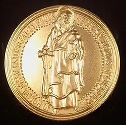 The St Peter's Medal was designed and produced by sculptor William Bloye of the Birmingham School of Art, for the purpose of being awarded to a person who has made significant contributions to the field of urology and is a member of the British Isles or Commonwealth.[1]