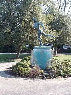 The public garden in the centre of the square is Grade II listed on the English Heritage Register of Historic Parks and Gardens and is 1.5 hectares (3.7 acres) excluding roads. In 1913, a proposal to build on the garden was abandoned after local protests. The land was bought by the Borough Council and in 1915 the garden was opened to the public. The centre of the garden is occupied by a sculpture, The Greek Runner, by Sir William Blake Richmond, which was erected in 1926.[2]