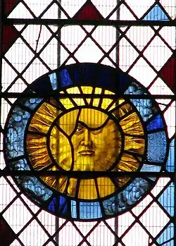 The greatest disaster to befall the church was the visit of William Dowsing in 1643. The Puritan Parliament decreed the demolition of altars, removal of candlesticks, and defacement of pictures and images. 'Basher' Dowsing, a fanatical anti-Romanist, was appointed as 'Parliamentary Visitor for the East Anglian counties for demolishing the superstitious pictures and ornaments of churches'. 'Cromwell's iconoclast'[11] kept a journal of his visits. On 6 January 1644, he visited six churches, including Haverhill. As for Clare, he wrote: "We brake down 1000 pictures superstitious: I brake down 200; 3 of God the Father, and 3 of Christ, and of the Holy Lamb, and 3 of the Holy Ghost like a Dove with Wings; and the Twelve Apostles were carved in wood, on top of the Roof, which we gave order to take down; and 20 Cherubim to be taken down; and the Sun and the Moon in the East window, by the King's Arms to be taken down". Bullet holes in the roof suggest one inaccurate method, while the rest was done with arrows, stones, poles, and whitewash. The Sun and Moon still survive.[12]