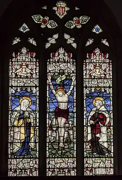 Two stained glass memorial windows are by Charles Eamer Kempe.[1]