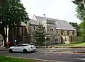 The church seen from the northeast from Manor Road. -