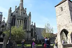 St Thomas of Canterbury Church is a Roman Catholic Parish church in Canterbury, Kent, England. It was built from 1874 to 1875 in the Gothic Revival style. It is situated on the corner of Burgate and Canterbury Lane, west of Lower Bridge Street, opposite the grounds of Canterbury Cathedral in the centre of the city. It is the only Roman Catholic church in Canterbury, built on the site of a medieval church (demolished in 1870); the old St Mary Magdalen’s Tower was retained. The church contains relics of Thomas Becket.[1][2]