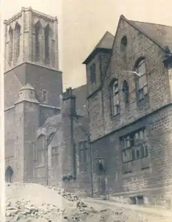 The first Sheffield Blitz raid by German bombers on the night of 12/13 December 1940 resulted in the destruction of the original 1853 chapel when a parachute mine landed on the roof. The original girls school was also destroyed and every window in the church was blown out destroying some valuable stained glass windows. The newer part of the church from 1911 escaped serious damage.