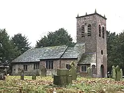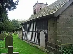 There is evidence of a Saxon church on the site before the Norman Conquest.[7] In 1187–90 Adam de Dutton founded a priory on the site for Norbertine canons but this was short-lived and there is now no trace of the priory. It is likely that the building of the present church began in the middle of the 13th century. Towards the end of the 16th century, the chancel area was remodelled and a pulpit, altar rails and communion table were installed. In 1645 the church was extensively altered and extended. The south and west walls of the nave were rebuilt and the roof of the nave was lowered. A small chapel and vestry with a stone foundation and timber framed wall were added to the south side of the chancel, while a stone extension was added to the north side. In 1711 the east end of the chancel was rebuilt and a brick tower was added at the east end of the church. In 1722 a gallery was built. Wooden floors were installed in 1813, the vestry was incorporated into the church and a new vestry was built onto the south side of the tower. In 1857 the chancel floor was tiled, the walls were painted with medieval designs and the timber supports and the chancel ceiling were plastered. Stained glass was added to windows and the gallery was removed. By 1880 the church needed major repairs, and because of this the new church was built and the old church ceased to be the parish church. Repairs were undertaken in 1894 for dry rot, in 1927 for death watch beetle and in 1958, again for death watch beetle. In 1971 the church passed into the care of the Redundant Churches Fund, the predecessor of the Churches Conservation Trust.[8][9]