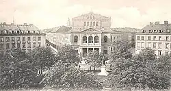 The house, intended to show a different repertory than the court theatre,[5] met with financial problems, under frequently changing directors. It had to be sold in March 1870, went first to the former director Friedrich Engelken, shortly thereafter to the architect and a partner, who bought it for the king, who acquired it officially in May 1870. It was reopened on 1 October 1870, directed by Hermann von Schmid.[7] In 1873, Ludwig II granted it the name "Königliches Theater am Gärtnerplatz" (Royal theatre at the Gärtnerplatz).[2] From 1877, Karl von Perfall directed the house and also the Hoftheater. The 1878/79 season was especially splendid but resulted in a large deficit. Perfall therefore focused on the Hoftheater, and was succeeded by Georg Lang. The theatre dropped the royal emblem and was called "Theater am Gärtnerplatz".[8]