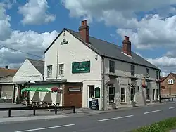 The village includes several buildings of historical and architectural interest, including a number that are Grade II listed. The former Black Horse public house on Thame Road was built in 1751.[8] Ash Cottage in School Lane is formed from three former cottages dating from the 17th century, now a single house. On the main street is a 17th-century bakehouse, thatched and built of coursed stone and bearing the date 1658, that was used as a bakery until about 1914.[3] In the 18th century Stadhampton had two clockmakers: James Jordan (born about 1751) and Thomas Jordan, who worked together.[9] Thomas repaired the turret clock at St Peter's parish church, Great Haseley on several occasions between 1770 and 1790.[9][10]