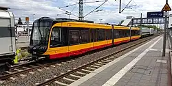 The Stadler Citylink (known as the Vossloh Citylink until 2015) is a series of tram-trains manufactured by Stadler Rail at its Valencia factory since 2011. The design was introduced by Vossloh España before their takeover by Stadler Rail in 2015. They are currently used in Germany, Hungary, Mexico, Spain and the United Kingdom, with more on order in Austria. Stadler opened a new factory in the United States in 2016, which is in the process of building up to 80 Citylink vehicles for service in Salt Lake City beginning in 2028.[1]