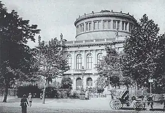 Between 1873 and 1876, a new municipal theatre was built on the site of the previously demolished fortifications on Kaiserstraße. The client was a joint-stock company which had been founded specifically for this purpose. Richard Lucae, the director of the Bauakademie, was responsible for the planning. The stage machinery was built by the E. Schwerdtfeger company from Darmstadt, which also worked for Wagner's Bayreuth Festspielhaus.[1]