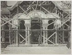 Staff was invented in France in about 1876 and was used in the construction and ornamentation of the buildings of the Paris Expositions of 1878 and of 1889. It was also largely used in the construction of the buildings of the World's Columbian Exposition at Chicago in 1893, at the Omaha and Buffalo Expositions in 1898 and 1901, at the Louisiana Purchase Exposition in 1904, and at later expositions, and on temporary buildings of other kinds.