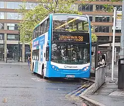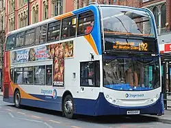 Stagecoach Manchester[1] is a major bus operator in Greater Manchester, operating franchised Bee Network bus services on contract to Transport for Greater Manchester (TfGM). It is the largest UK bus subsidiary of Stagecoach Group outside of Greater London, as well as the largest within the metropolitan county of Greater Manchester by passenger numbers, carrying up to 96.2 million passengers in 2019/20.[2]