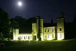 Carr Hall Castle,[7] located on the edge of Thunnerley Wood in the Holywell Brook valley, was built in the mid-nineteenth century by the Shaw family, local mill owners, to improve the view from their mansion at Shaw Park. It provided a stable block and housing for the bailiff who bred the shire horses for Brookroyd Mills. The building has been restored and modernised since 2002. In 2008 the castle won Channel Five's TV show I Own Britain's Best Home.[8]