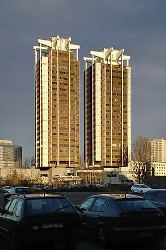 The Stalexport skyscrapers are twin skyscrapers (Tower A and Tower B) located in Katowice, Silesia, Poland. The buildings share a three-story base. They were designed by Yugoslavian architect Georg Gruićić in the late 1970s and finished in 1981 and 1982, respectively.[1]
