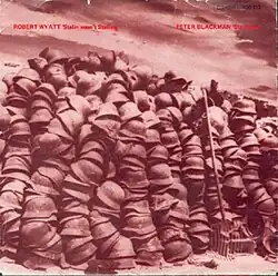 Robert Wyatt covered the song in 1980, emulating an a cappella group by singing in four-part harmony (achieved by multi-tracking).[2] Wyatt's interest in the song was that he wanted to remind the West of the selective memory they had during the Cold War about this earlier alliance. The cover was released as a single in 1981 with "Stalingrad", a poem about the Battle of Stalingrad, written and read by Peter Blackman, on the "B" side. "Stalin Wasn't Stallin'" and "Stalingrad" also appeared on Wyatt's 1982 album Nothing Can Stop Us.[3] Wyatt had heard Blackman recite the poem in 1979 to an enthusiastic audience that apart from Wyatt, also included Jack Dash, a famous communist trade unionist and leader of many British dock workers.[3] When Blackman was finished, Wyatt convinced him to record it and this was the recording that ended up in the single and album.[3]