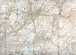 Map of the wider area in 1924. The seat took in the south-easternmost part of Lancashire and lay within the ancient Salford hundred division of Lancashire, skirting the more densely populated north bank of the Tame at Ashton under Lyne, taking in parts of historic Cheshire and both banks of the river above Ashton.