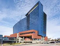 In 2008, the hospital announced plans to expand its rooms and several departments.[10] The expansion of the hospital, dubbed "New Stamford Hospital", resulted in an 11-story glass structure.[8] The expansion was completed in late 2016 and cost approximately $575 million.[8][11]