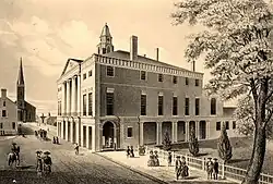 Delegates began to arrive in New York City in late September, and a preliminary meeting was held by four delegations on September 30; what was discussed then is not known.[17] The first session of the Congress was held on October 7, in New York City Hall, now known as Federal Hall. The Congress elected Timothy Ruggles, a conservative Massachusetts delegate, as its chairman, narrowly rejecting James Otis, who John Adams described as "the soul" of the body. John Cotton, the deputy secretary of the Massachusetts General Court, had been retained by the Massachusetts delegation to make a formal record, was chosen as the body's secretary and record keeper.[19] The selection of Ruggles as a delegate had been engineered by Massachusetts governor Francis Bernard in the hopes of limiting the effectiveness of the congress.[20] His success in being elected chairman was at least partly because of the perception that Otis, a populist firebrand, "might give their meeting an ill grace."[21]