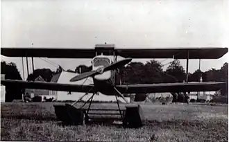 The air force evaluated the type and judged it suitable.[3] However, the new Minerva engines cost 50,000 BEF while the government could purchase war-surplus Hispano-Suiza engines from France for only 6,500 BEF.[3] Consequently, Stampe et Vertongen was asked to adapt the design to the alternative powerplant.[3] The firm was reluctant to accommodate the change, as the Hispano-Suiza engines and cooling systems were heavier than their Minerva counterparts, and had not only obsolete technology but were already used and worn-out.[3] Nevertheless, the contract was too valuable to refuse, and Renard altered the design accordingly.[6] The biggest change was to move the upper wing forward, staggering it with the lower wing to preserve the aircraft's centre of gravity.[7] The change also provided improved access to and visibility from the forward cockpit.[6] The air force purchased the RSV.26 in this form, now designated RSV.26/180 to reflect its more powerful engine.[2][6] In service, it was known as the RSV décalé[2] or 26 décalé[6] ("staggered" in French).