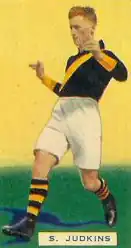 At the end of 1936, when the Tigers missed the finals for the first time during his career, Judkins left VFL football at the age of 29. He had a brief stint in the country leagues of Victoria as a playing coach, notably leading the strong Albury club to the premiership in 1937. Then, he enlisted in the Second AIF and saw action in Borneo. After the war, he was central in establishing the VFL's thirds (Under 19) competition, and in 1949 he was coach of VFA club Sandringham.[1] Judkins was given life membership at Richmond in 1962. Richmond's three other Brownlow winners were given this honour before they finished playing. He later coached Brighton Amateurs and was involved with junior clubs in the Sandringham area. His son Noel played in the Under-19s for Richmond, became an administrator with the Tigers and was later headhunted by Kevin Sheedy to oversee recruiting at Essendon. During a long career, Noel Judkins gained a reputation as one of the best talent-spotters of the modern era.